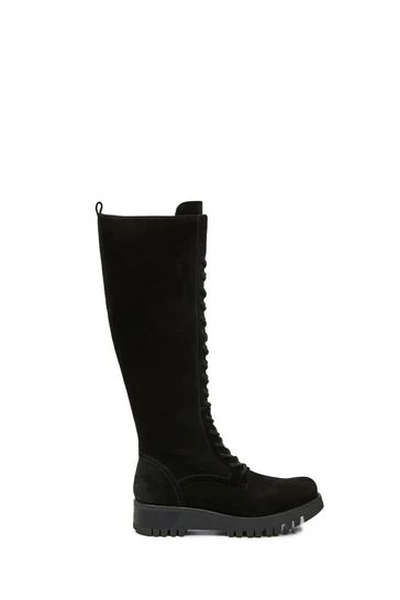 Responding to the immense success of their wilderness boot, they’ve reimagined the style with a knee-length silhouette for the new season. Crafted in the same sueded leather with a distressed finish for added character, these boots feature a hiking-inspired lacing system that runs all the way up to the contoured topline. An inside zip aids with on/off, and the laces can be played around with for a custom fit that hugs and gives in all the right places. they’ve kept the sturdy, supportive sole with its deep cleats, providing you with a seasonless foundation that can cope with even the most adventurous outings.