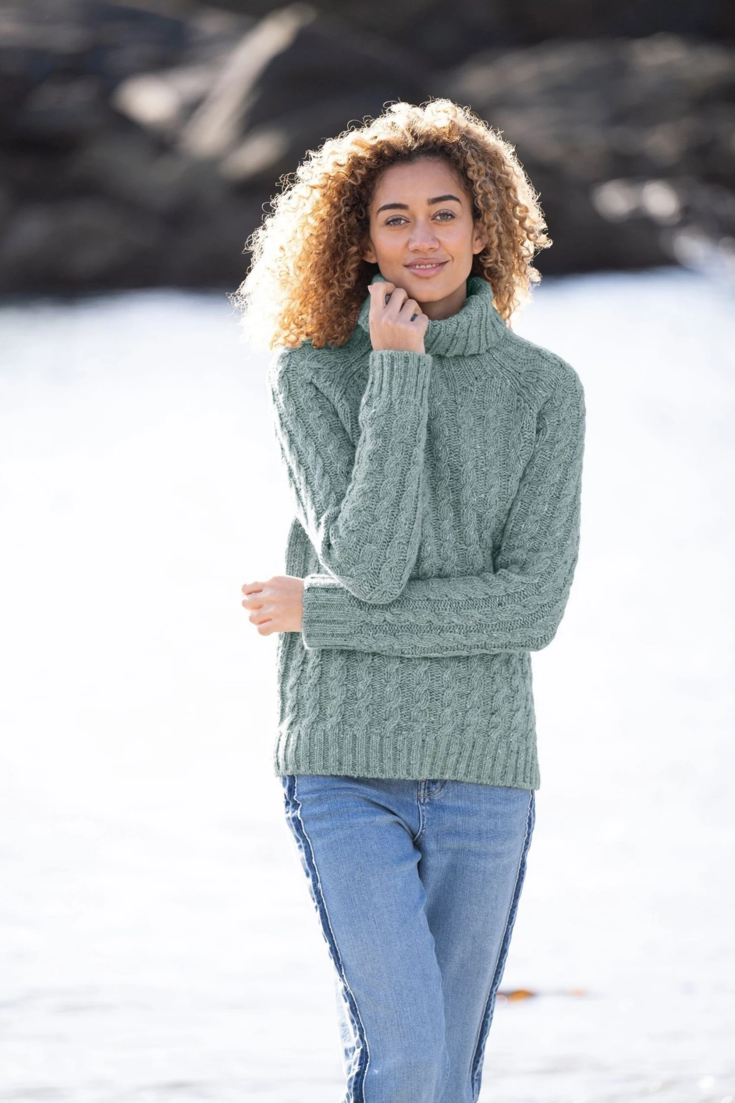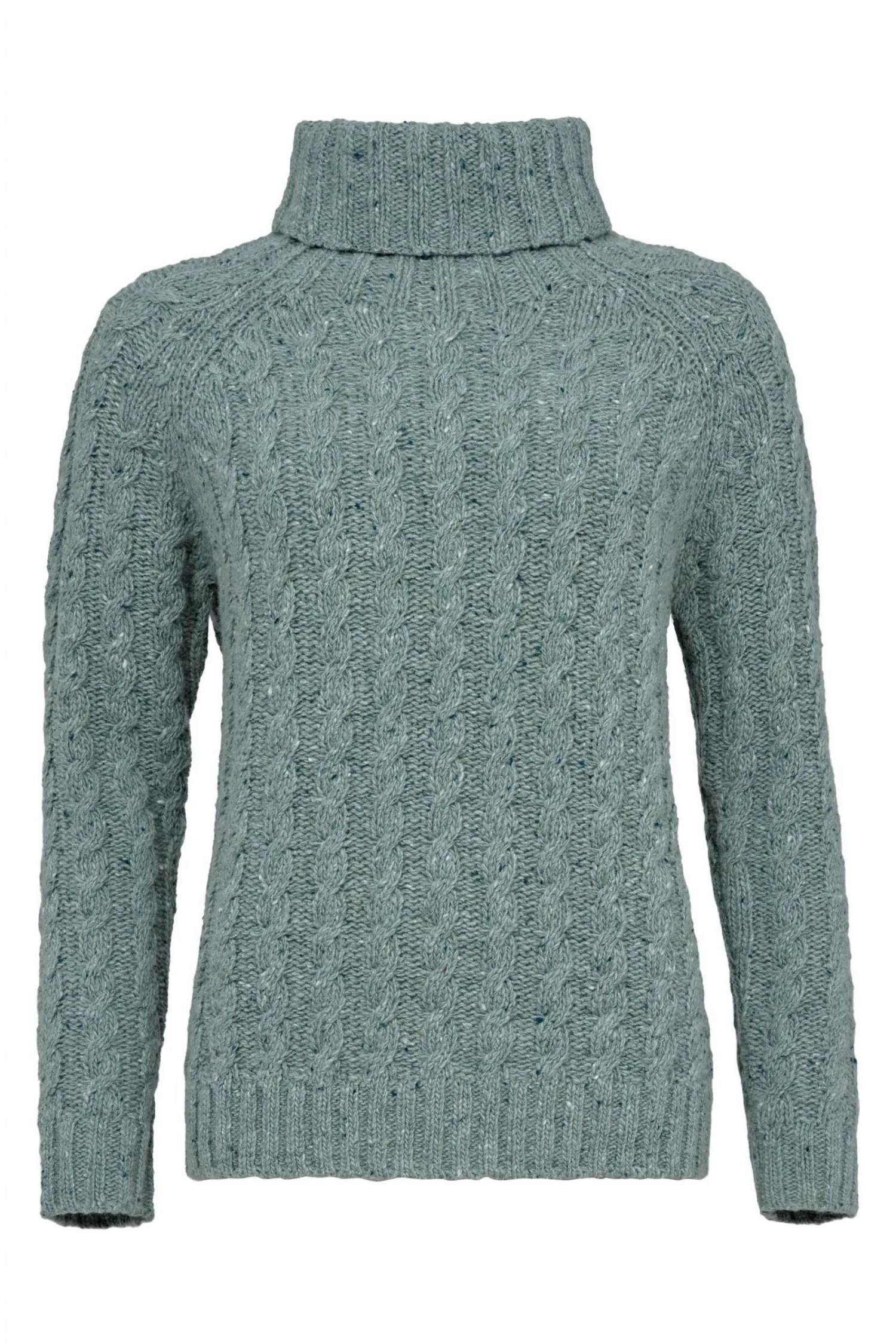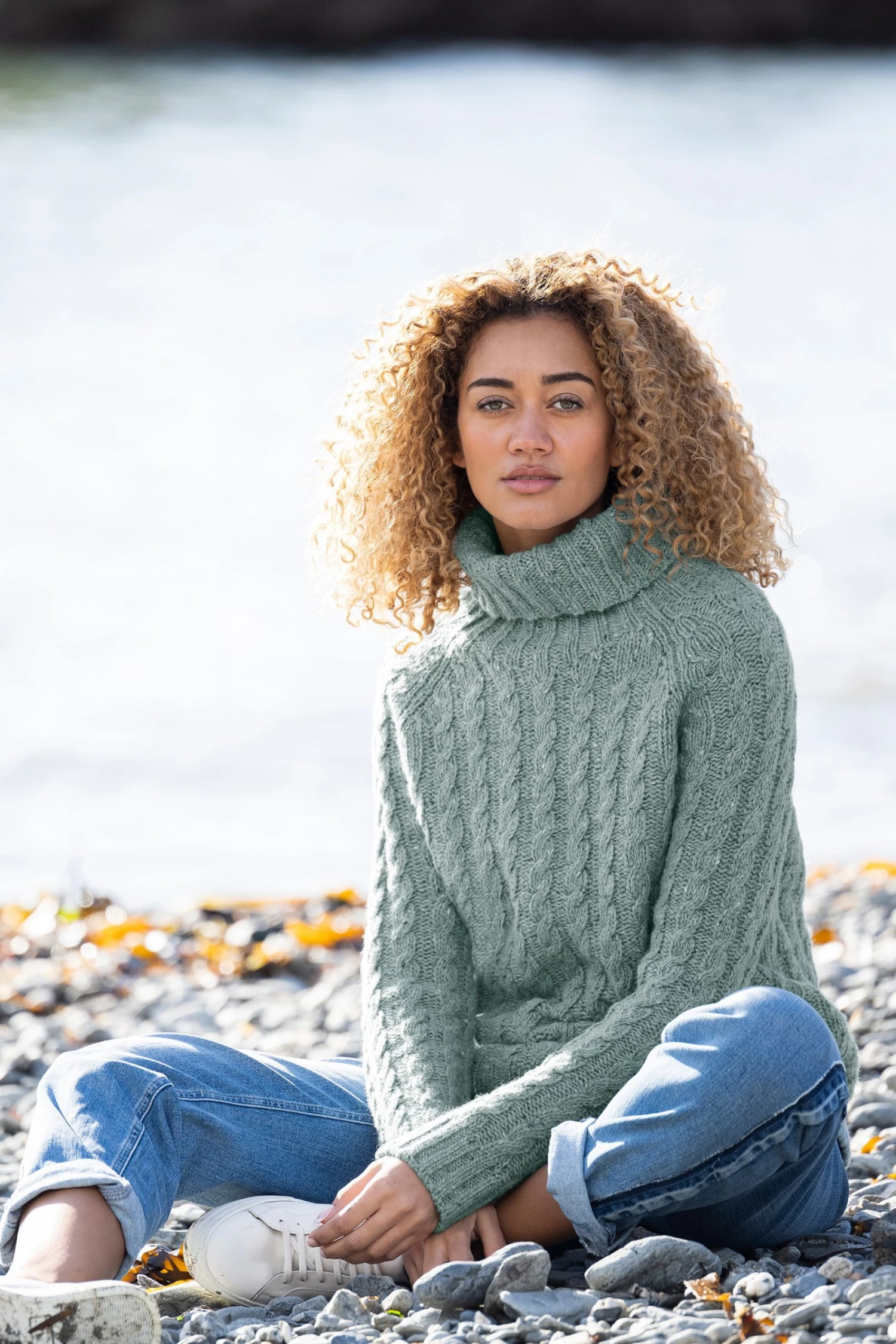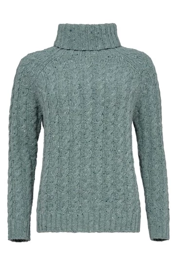 Snuggle up in sheer luxury with their Donegal cable roll-neck. Slipping easily from downtime decadence to outdoorsy comfort, this new-season style is created with raglan sleeves and full cabling front and back. Cut to a middling fit that s neither too close nor too loose, this piece features a subtle blue hue in the nep for light contrast. Just add jeans and your favourite high-tops for a look that s as classic as they come.