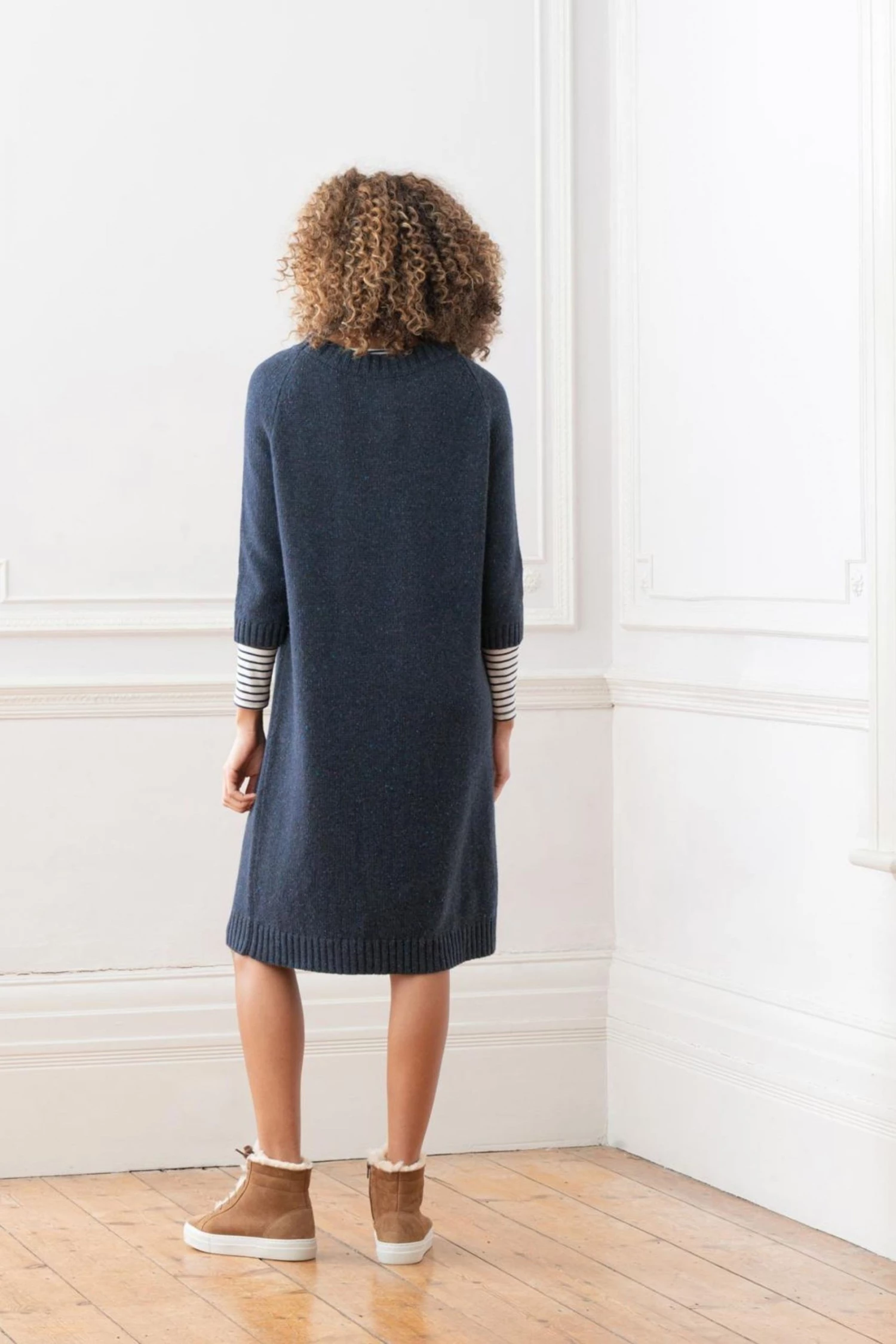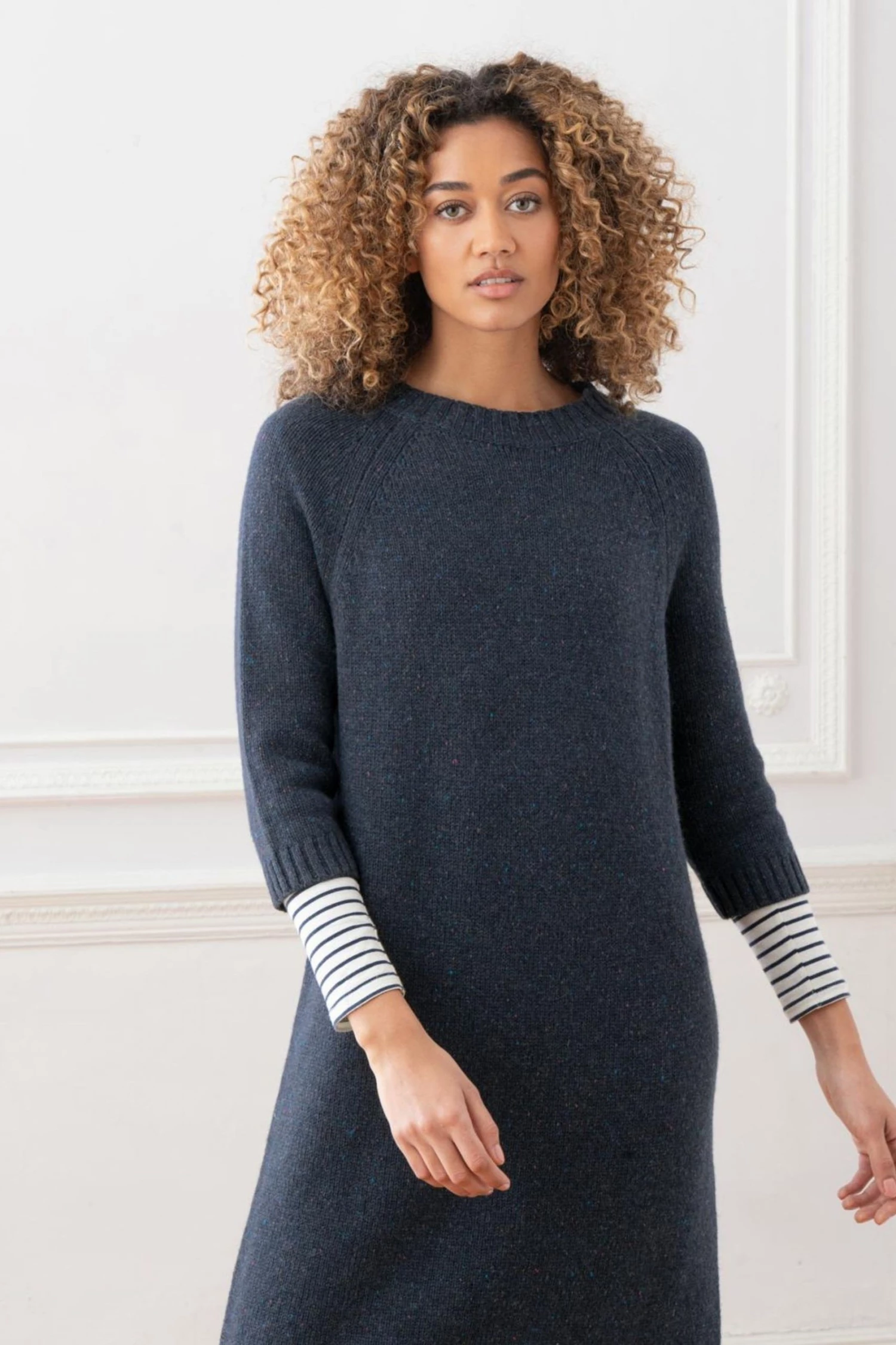 Using a cleaner, more compact Donegal-style yarn, they decided to bring this dress back for another season. Offered in a easy fit for effortless elegance you can style all year round. The crew neckline, raglan sleeves and ribbed trims offer a laid-back aesthetic that s perfect layered over thick tights or wet-look leggings in cool weather. Or wear it solo with chunky boots and a bobble hat for a go-to outfit on fresher spring days.