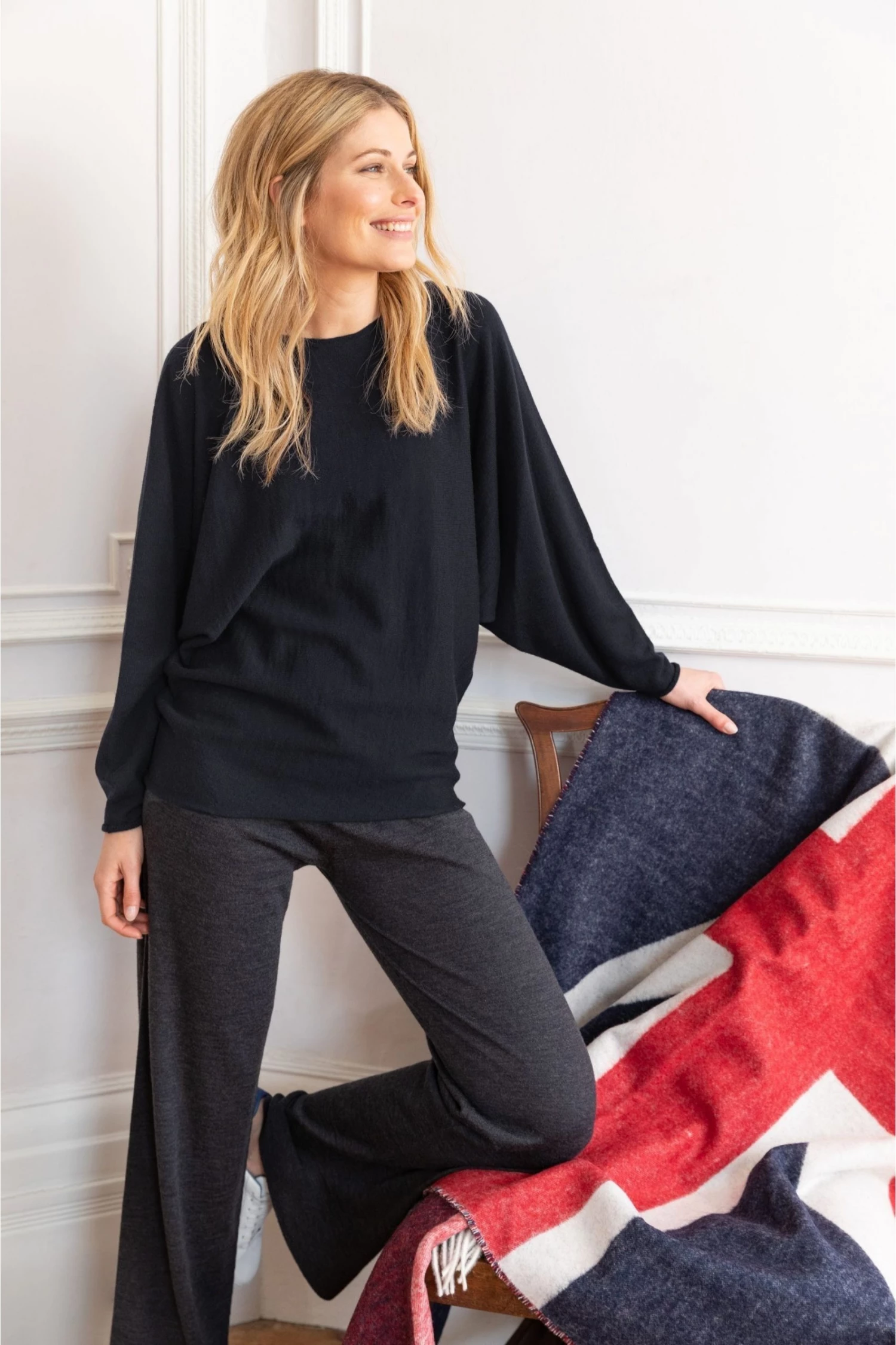 A new style for the season, their fine-knit jumper is designed with batwing sleeves that couldn’t be easier to pare back or dress up. They’ve created this piece in their much-loved Merino-wool yarn, spun in Italy using fully traceable raw fibres for transparent provenance. This jumper has a seamless construction and rolled hems for a clean appearance, while the slash neckline adds a flattering and feminine touch.