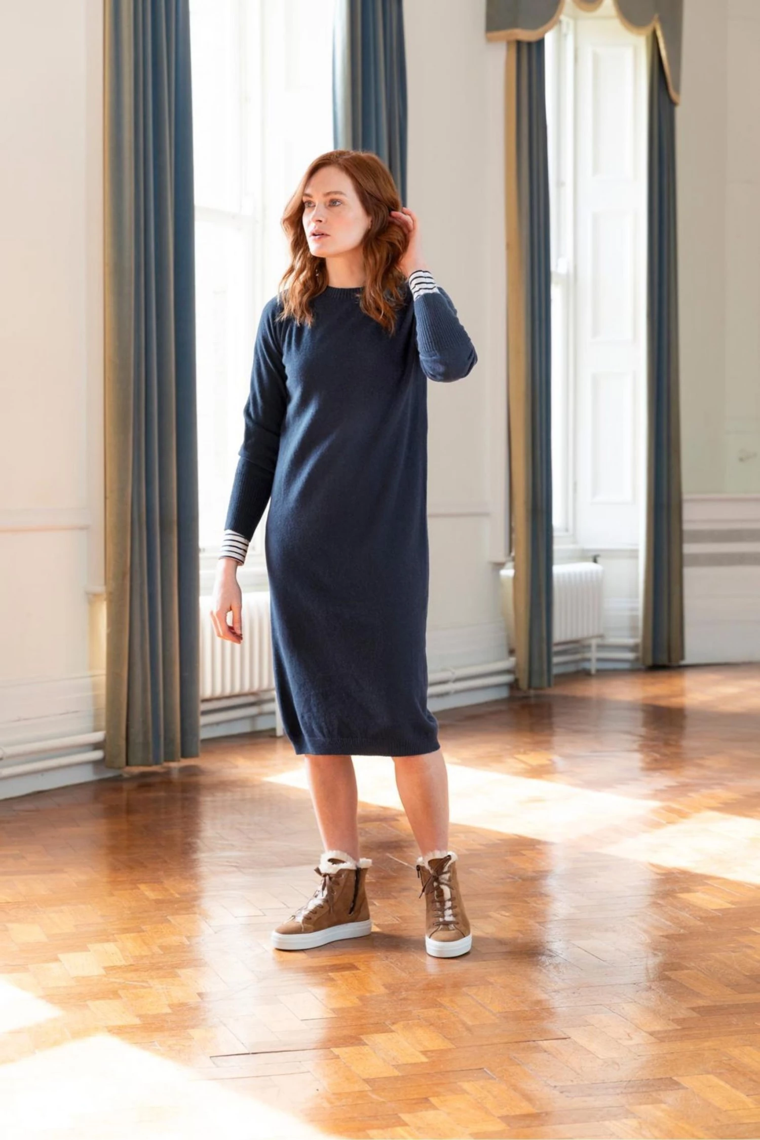By popular demand, they’ve taken their bestselling slouch dress and respun it with a longer length for new-season appeal. The midi dress looks set to be every bit as beloved as the original, with pure Geelong construction for a super-soft handle that cleverly maintains a comfy body temperature. This piece combines a midi length with a crew neckline, adding an effortless layer over slim-cut denim or our supple leather leggings. Or, if temperatures allow, go bare-legged for pared-back chic. Be among the first to fall in love with this Celtic & Co. newcomer.