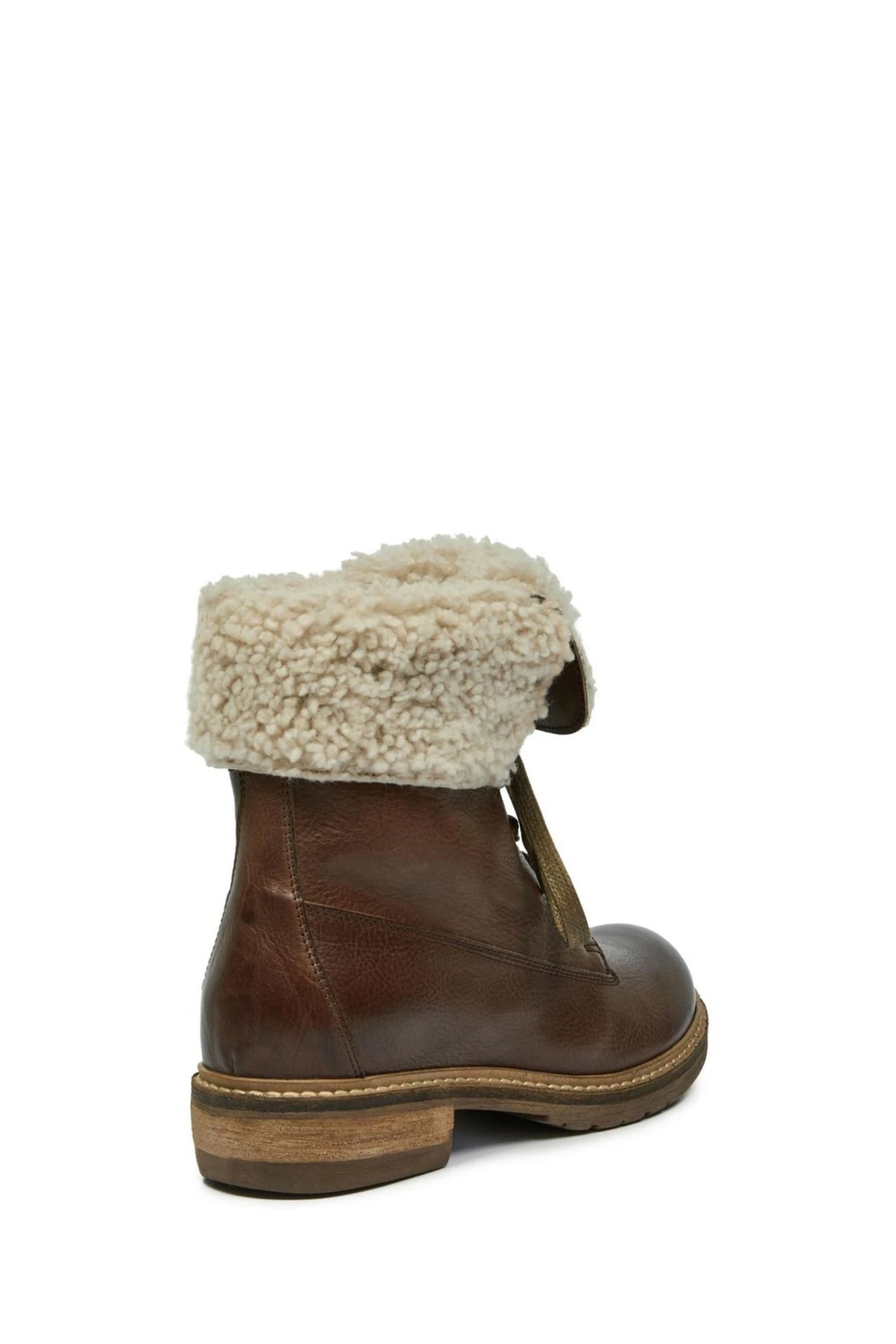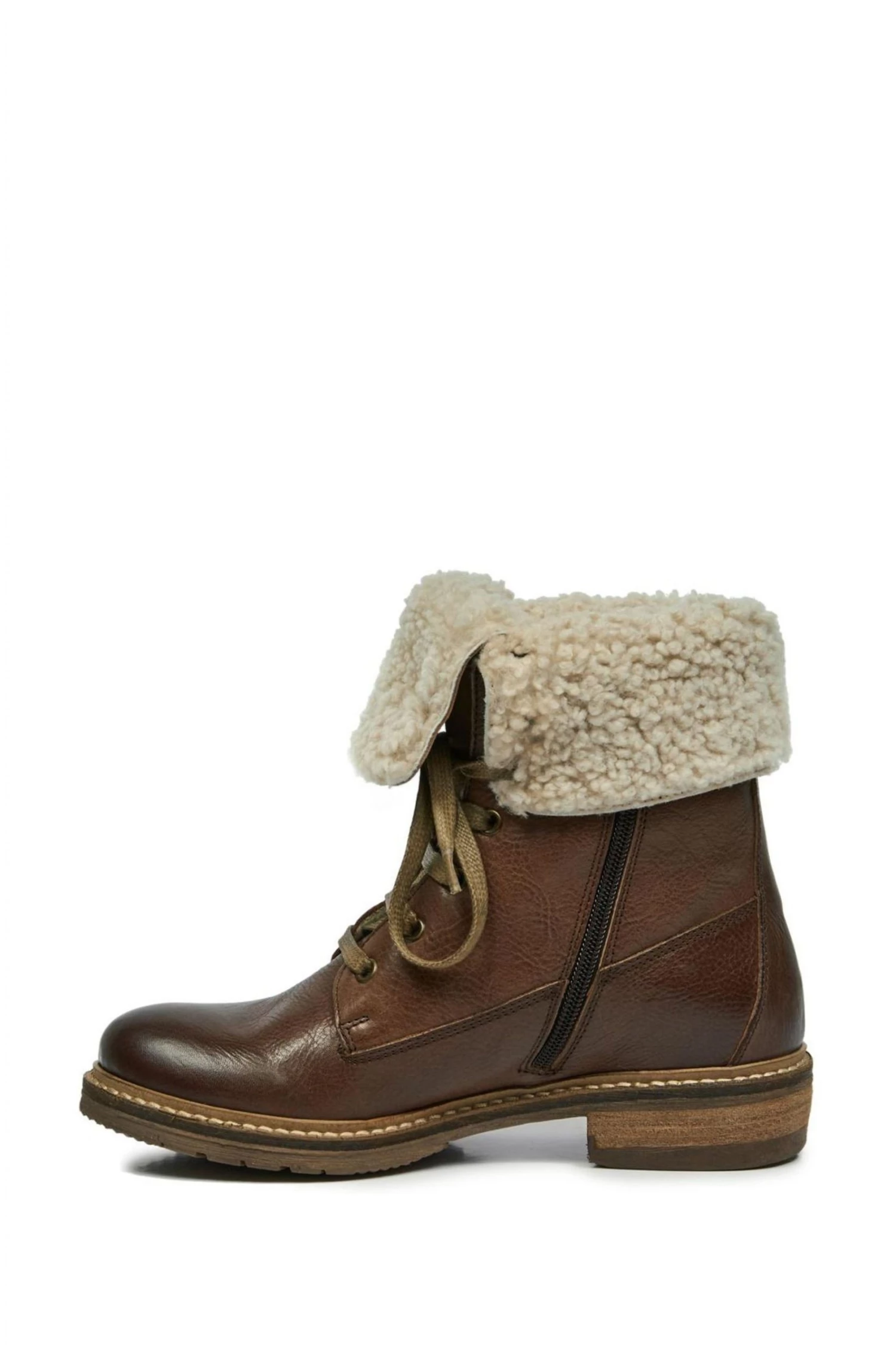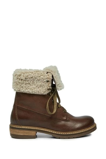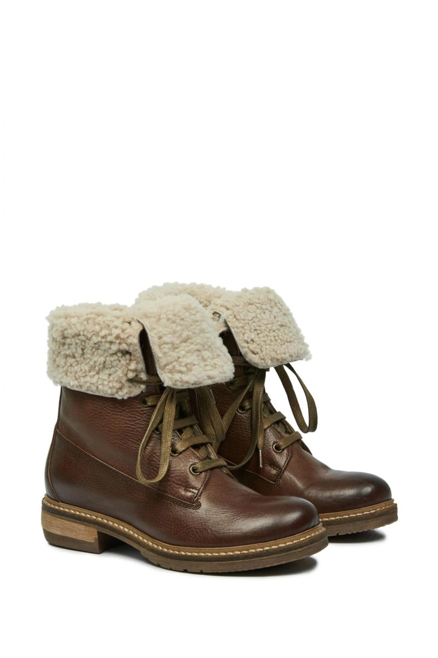 Refresh your new-season collection with their lace-up boots, perfect for adding a rugged edge to a feminine outdoorsy look. Crafted in rich leather with an antiqued effect for vintage styling, these modern boots are trimmed with plush sheepskin at the extended cuff for fold up/fold down versatility.