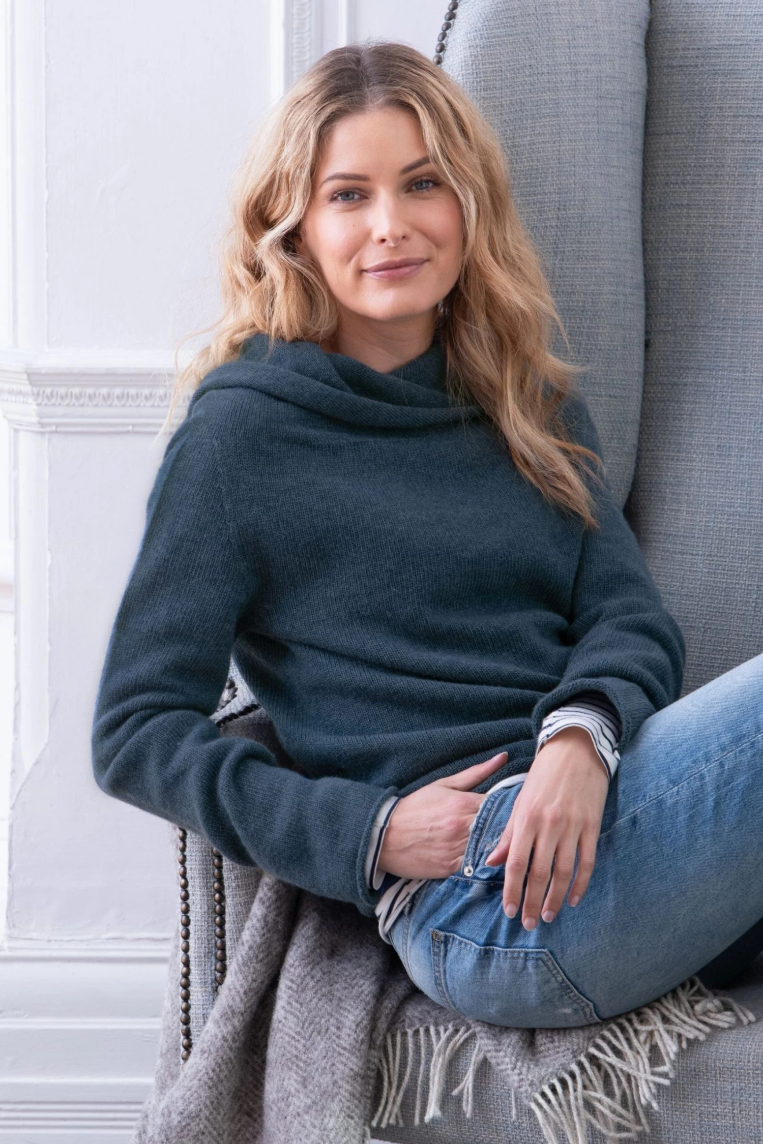 Perfect with denim or lounge joggers all year round, this super-luxe jumper is crafted in 100% Geelong yarns that provide temperature-regulating comfort and breathability in any conditions. They’ve cut it with a flattering silhouette that doesn’t feel too restrictive and topped it with a feminine overlapping collar, while rolled edges deliver a slightly casual finish.