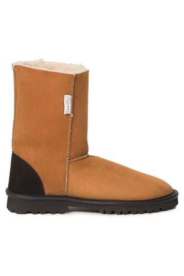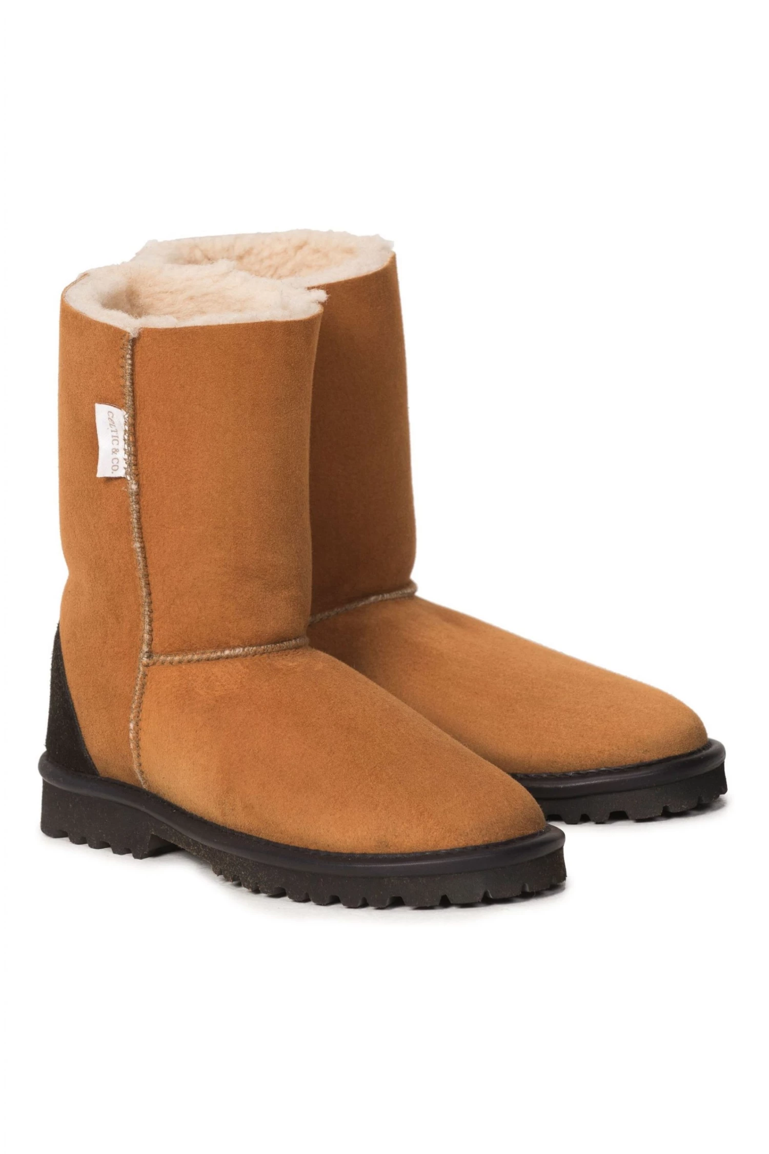 Made in Cornwall, using the finest British sheepskin, these classic boots are handcrafted and made to last. They are expertly finished, with durable double stitching, contrast leather heel protectors and hardwearing soles. SIZE & FIT When trying on your slippers for the first time, it may feel very tight across your toes and instep. This is nothing to worry about, as within an hour or so of wearing, the boots or slippers will loosen off as the wool starts to bed down and mould to your feet. So do not order a size bigger than you usually wear, otherwise they will end up too big for you. If you know you are a half size – then we recommend buying the size down unless you regularly buy up a half size.