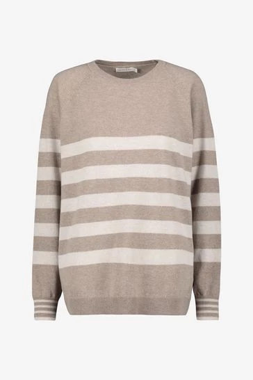 Celtic & Co. Celtic & Co Cream Stripe Placement Crew Neck Jumper