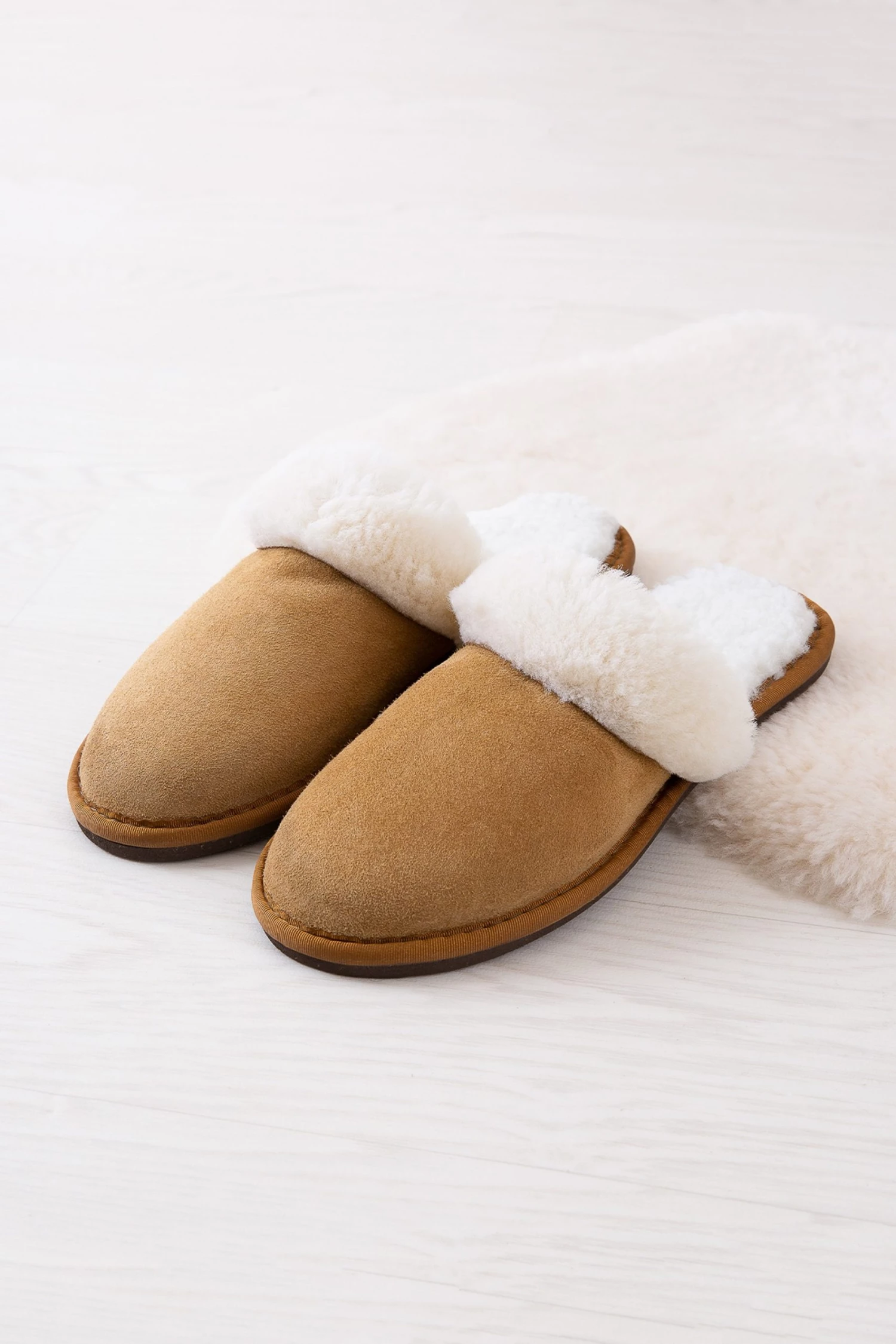 These ladies turnback mules are made from carefully selected British sheepskin to bring you style, durability and comfort in equal measures. Grosgrain trims add a touch of texture around the indoor/outdoor sole, and the fluffy inner takes pride of place at the turnback cuff. SIZE & FIT When trying on your slippers for the first time, it may feel very tight across your toes and instep. This is nothing to worry about, as within an hour or so of wearing, the boots or slippers will loosen off as the wool starts to bed down and mould to your feet. So do not order a size bigger than you usually wear, otherwise they will end up too big for you. If you know you are a half size – then we recommend buying the size down unless you regularly buy up a half size.