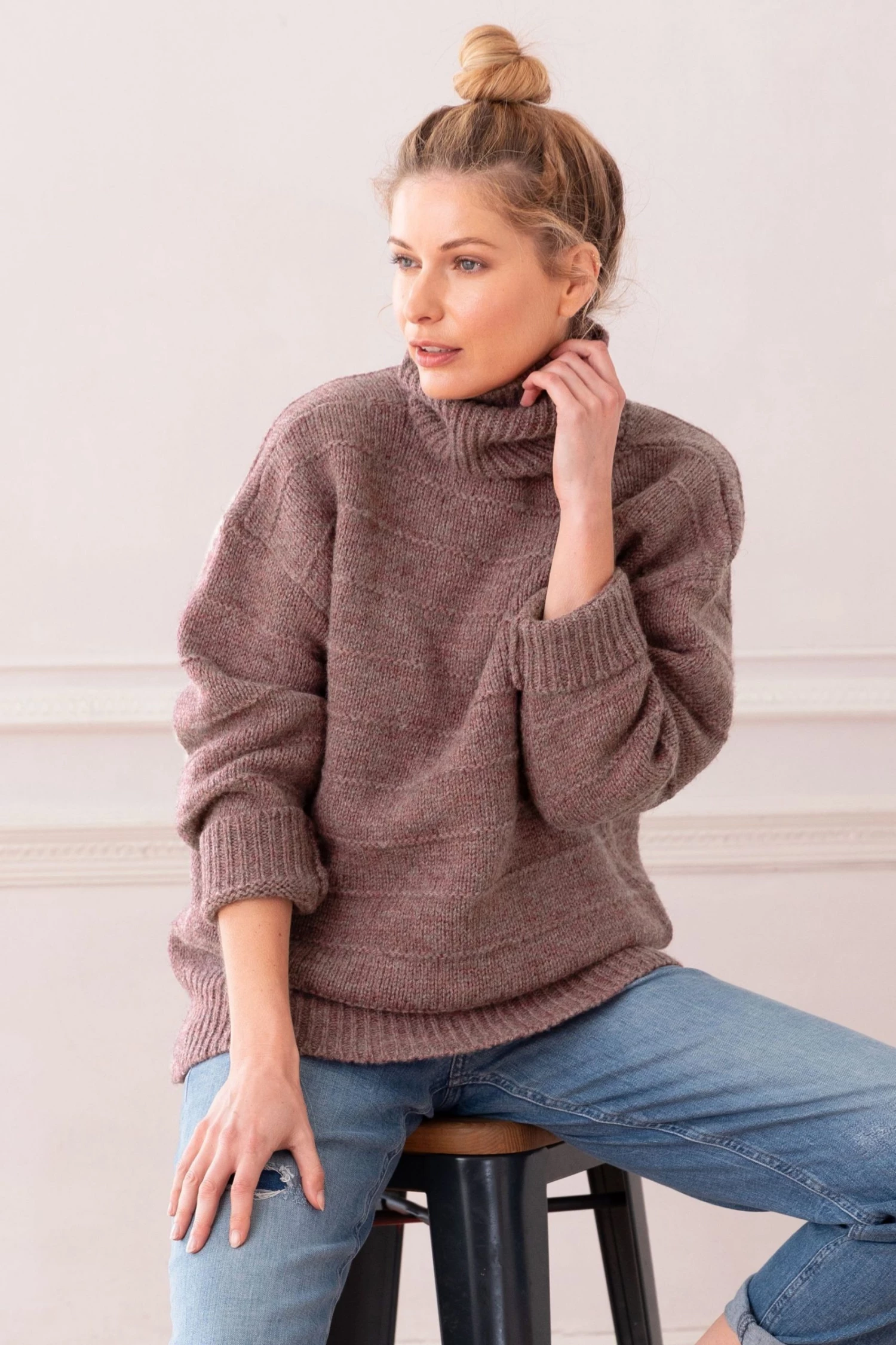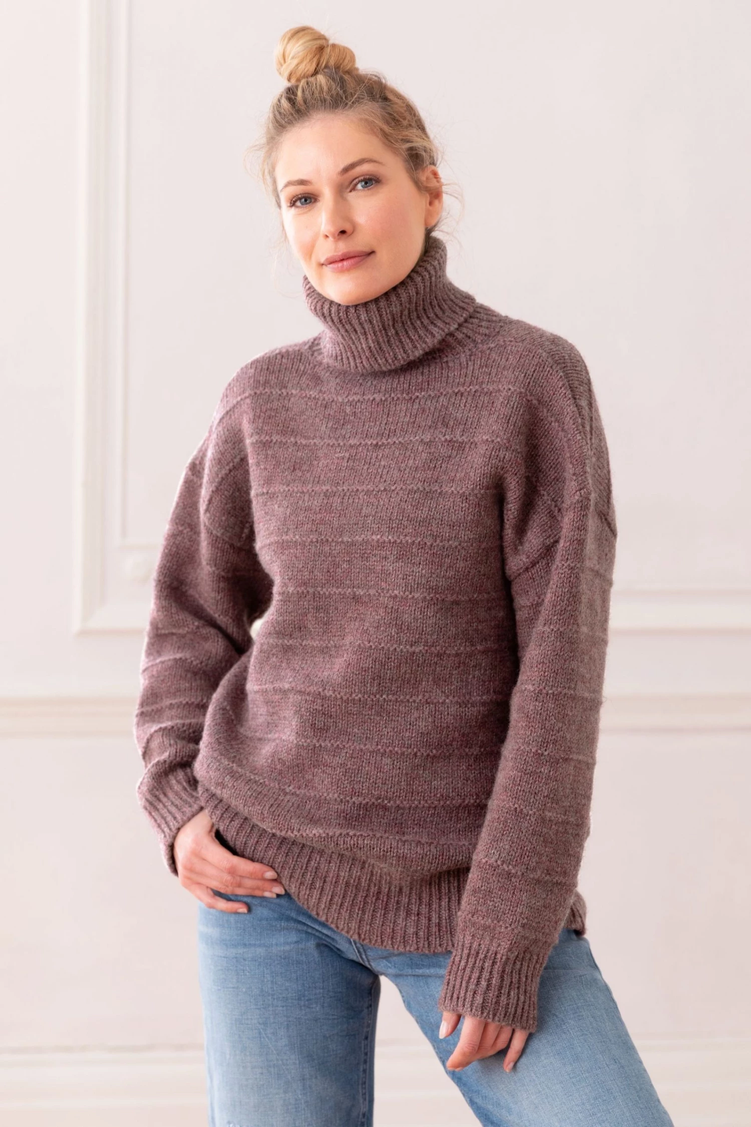 Crafted in an antique rose hue for new-season appeal with sumptuous depth, this purl-detail roll neck is perfect for days that call for relaxed luxury. Cut to a laid-back fit with slightly dropped shoulders, this pleasingly plush jumper is topped with a cloud-soft rolled neckline that begs to be snuggled into. A purl-knit structured stripe lies horizontally, giving another dimension to this wardrobe essential. Slip into your favourite jeans, roll up the cuffs and pull this cosy layer on for a look that will take you through the day in sublime comfort.