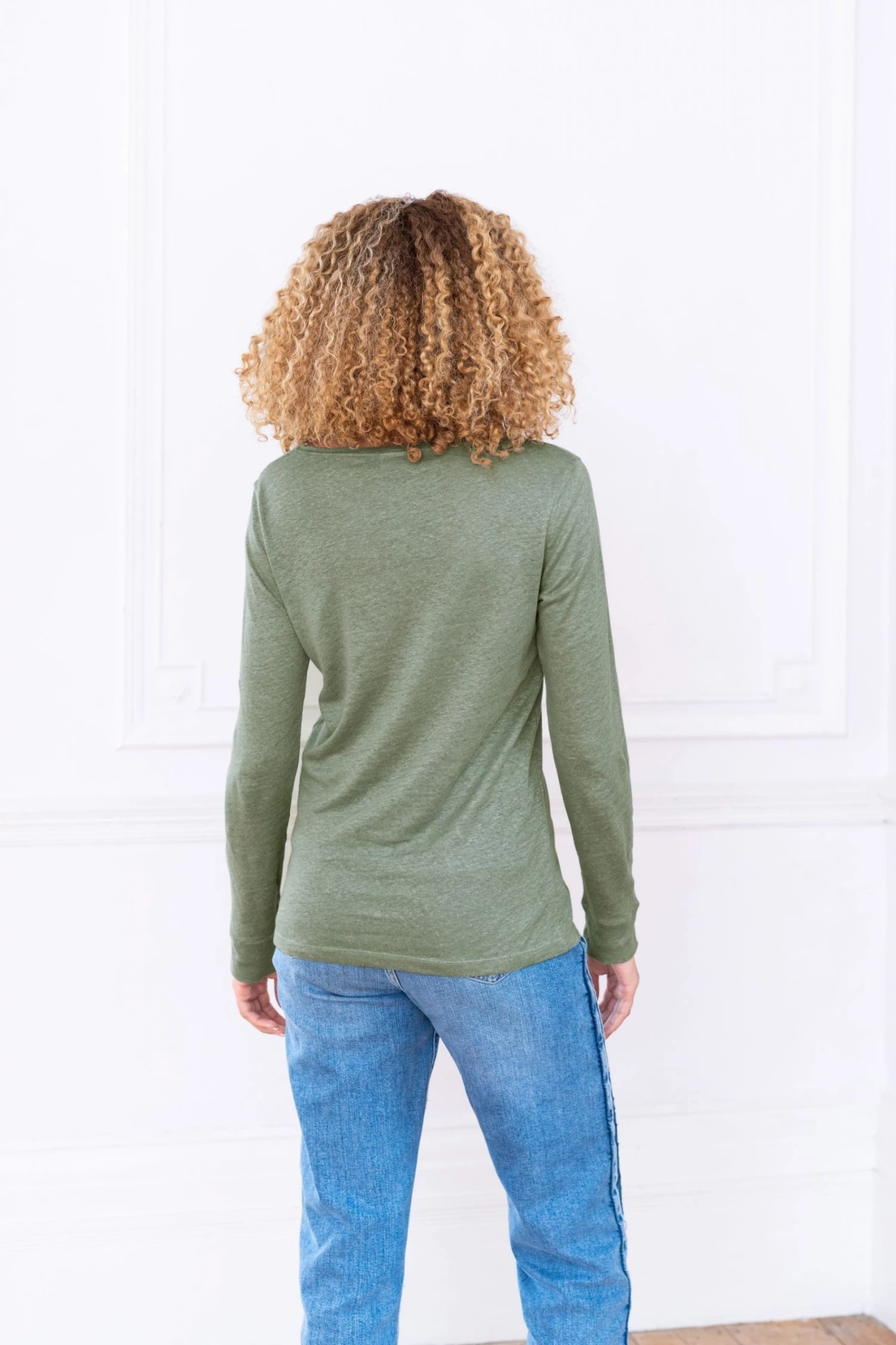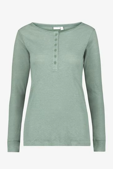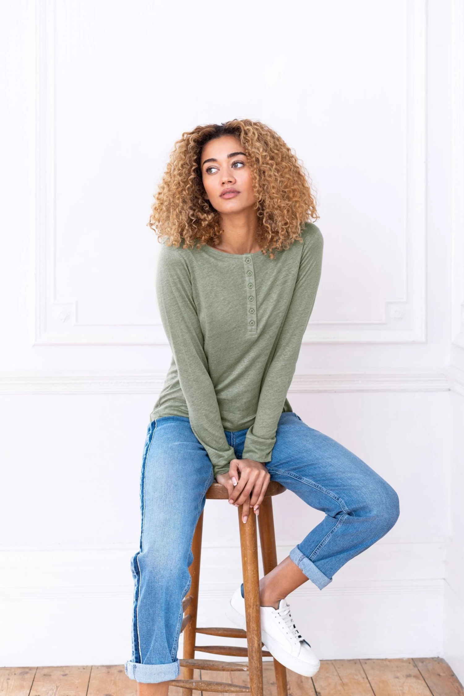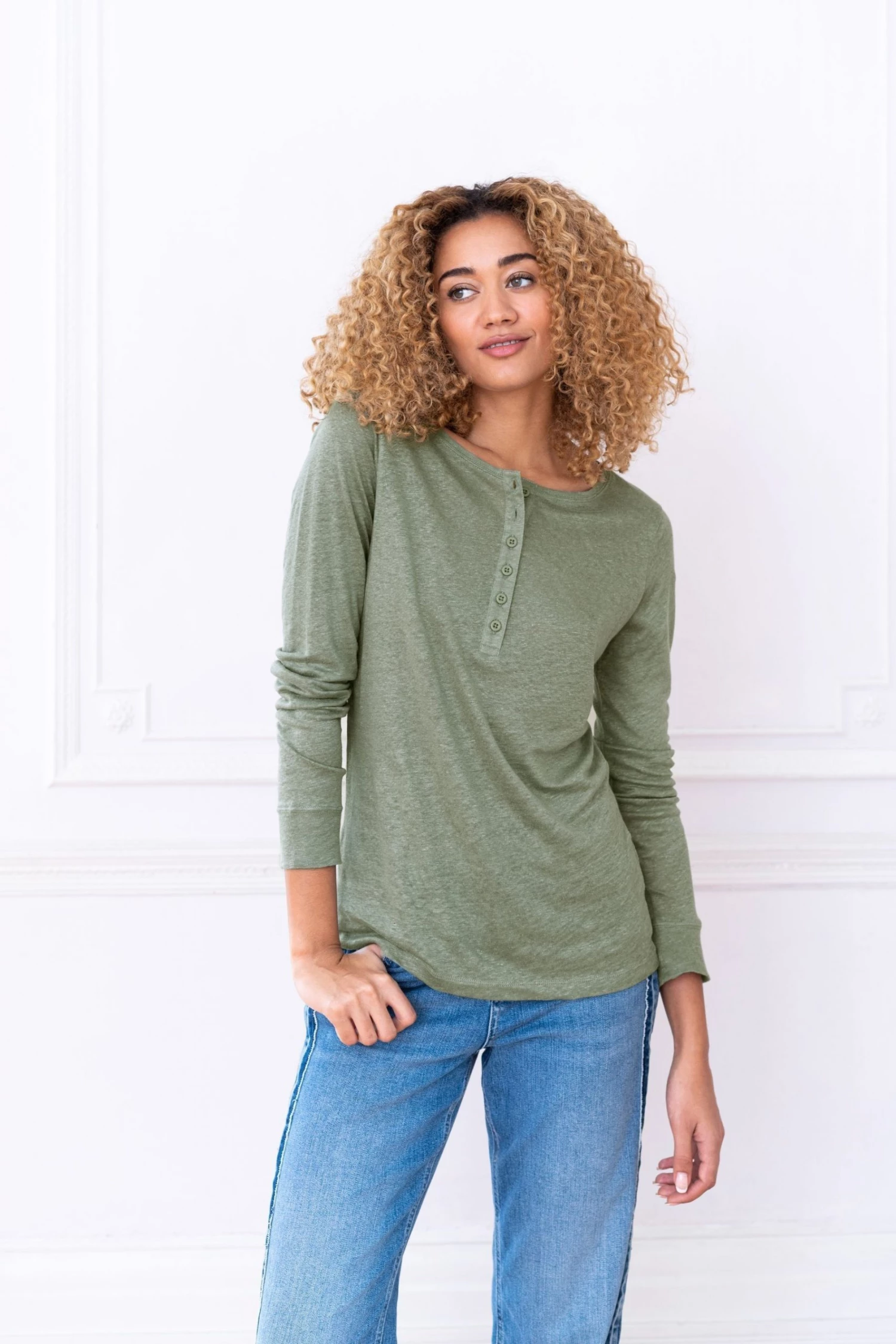 Celtic & Co. Celtic & Co Sage Green Linen Henley Top