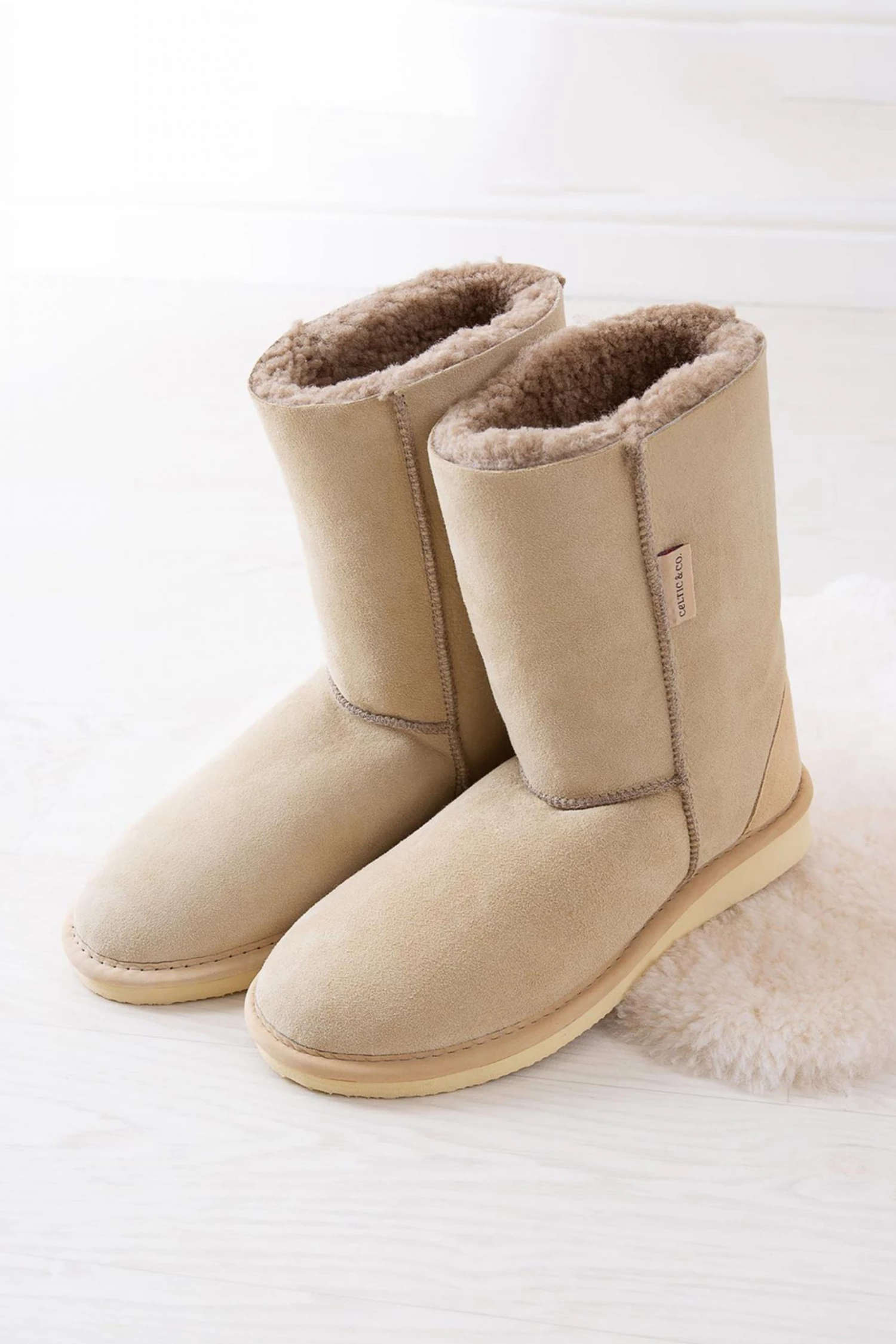 Practical and fuss-free, these clogs are handmade in their Cornish factory, from 100% British sheepskin. They feature a durable sole, which will stand up to trips down the garden but will keep your feet warm and comfortable indoors. SIZE & FIT When trying on your slippers for the first time, it may feel very tight across your toes and instep. This is nothing to worry about, as within an hour or so of wearing, the boots or slippers will loosen off as the wool starts to bed down and mould to your feet. So do not order a size bigger than you usually wear, otherwise they will end up too big for you. If you know you are a half size – then we recommend buying the size down unless you regularly buy up a half size.