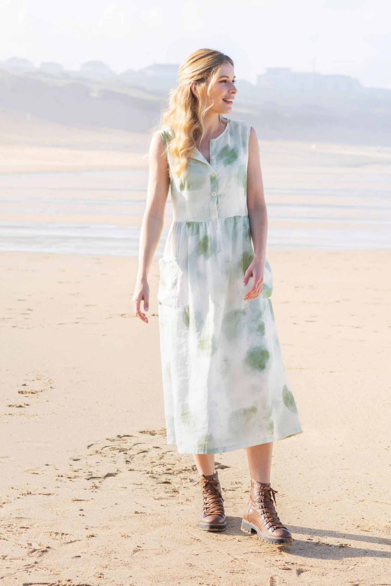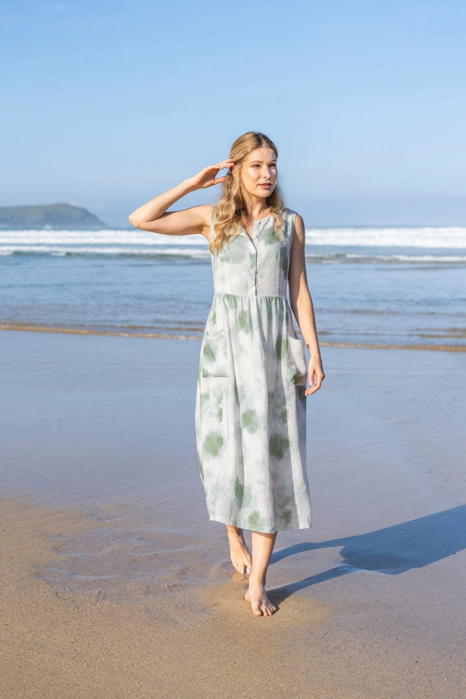 Effortless pieces are essential on summer days when you just want to get straight out into the sunshine. Their sleeveless midi dress is designed to deliver just that, cut to a floaty, feminine silhouette in 100% linen for a more sustainable choice that doesn’t compromise on comfort one bit. Linen uses less water and no chemicals during its growth process, is naturally antimicrobial and is fully biodegradable at the end of its lifespan. They’ve digitally printed the fabric (again, using less water) with a cloud-like motif and washed it to ensure a soft handle. The skirt part has a voluminous shape, while the front placket is trimmed with natural Corozo-nut buttons. Complete with a white, strappy shift in pure cotton underneath, its the perfect way to prep your wardrobe for finer weather.