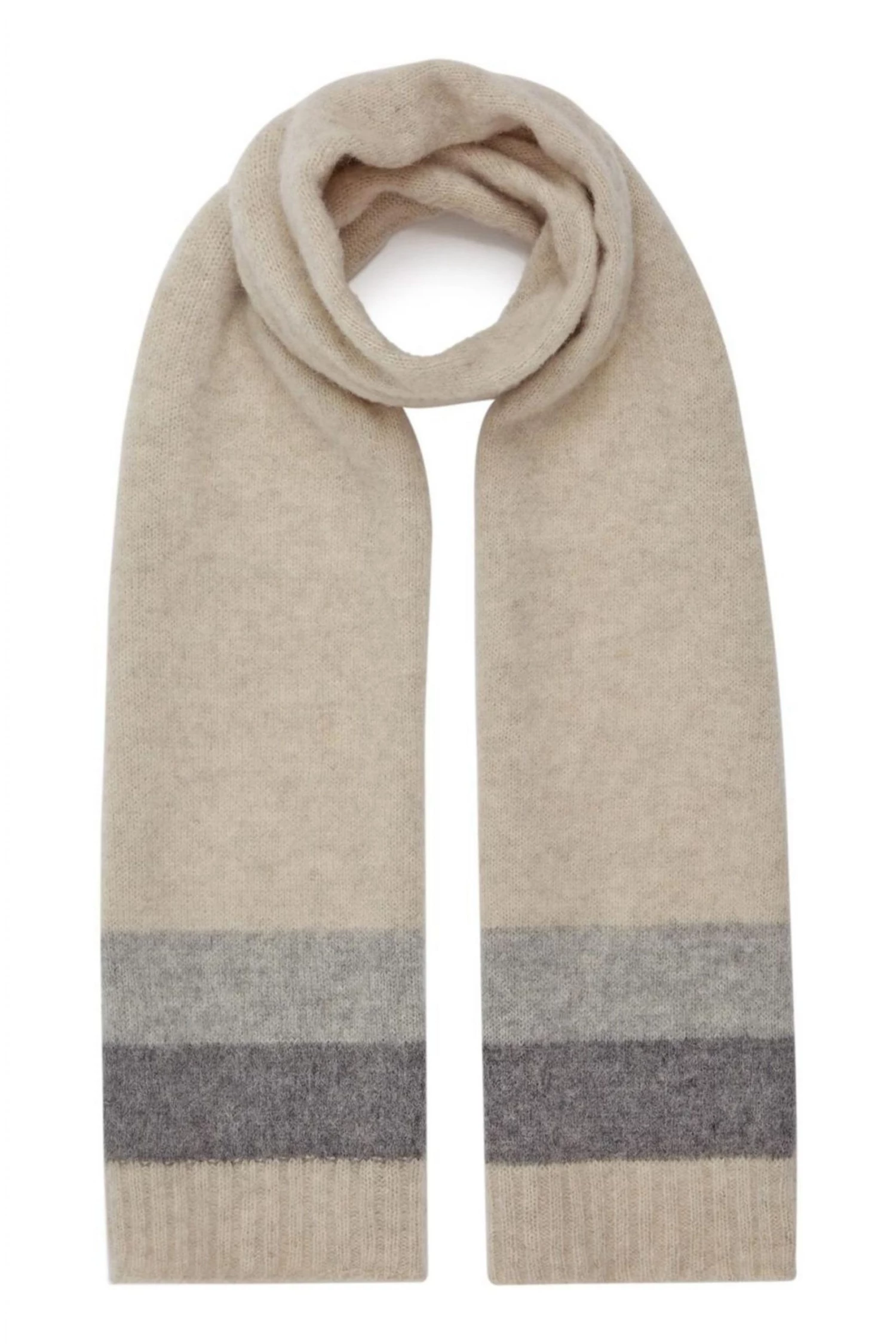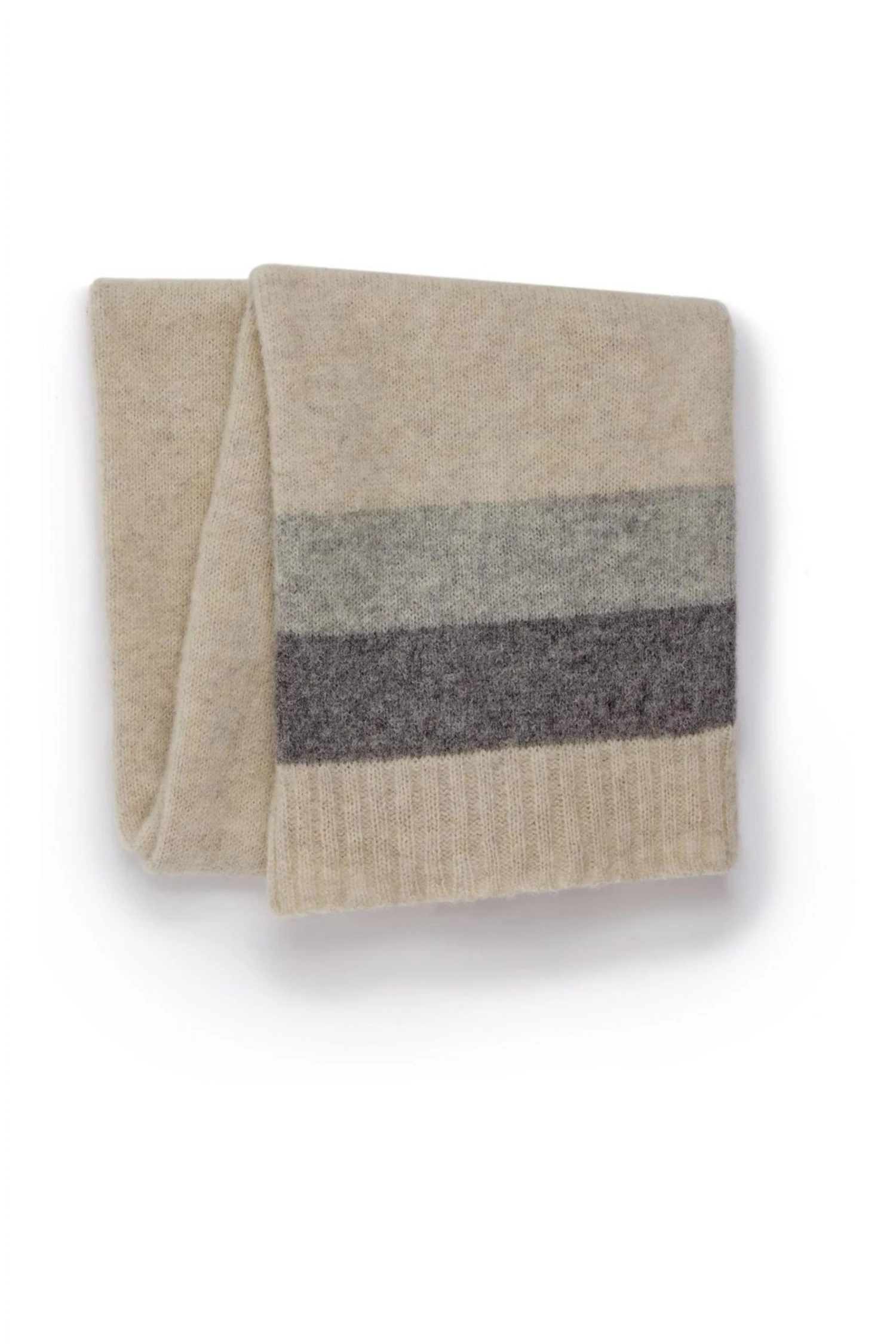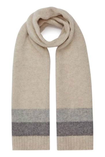 Designed in a colourblocked style for modern accessorising, their new-season scarf is crafted in Shetland wool spun by the talented team at Knoll Yarns. They’ve switched out fringing for a contemporary ribbed trim for clean styling.