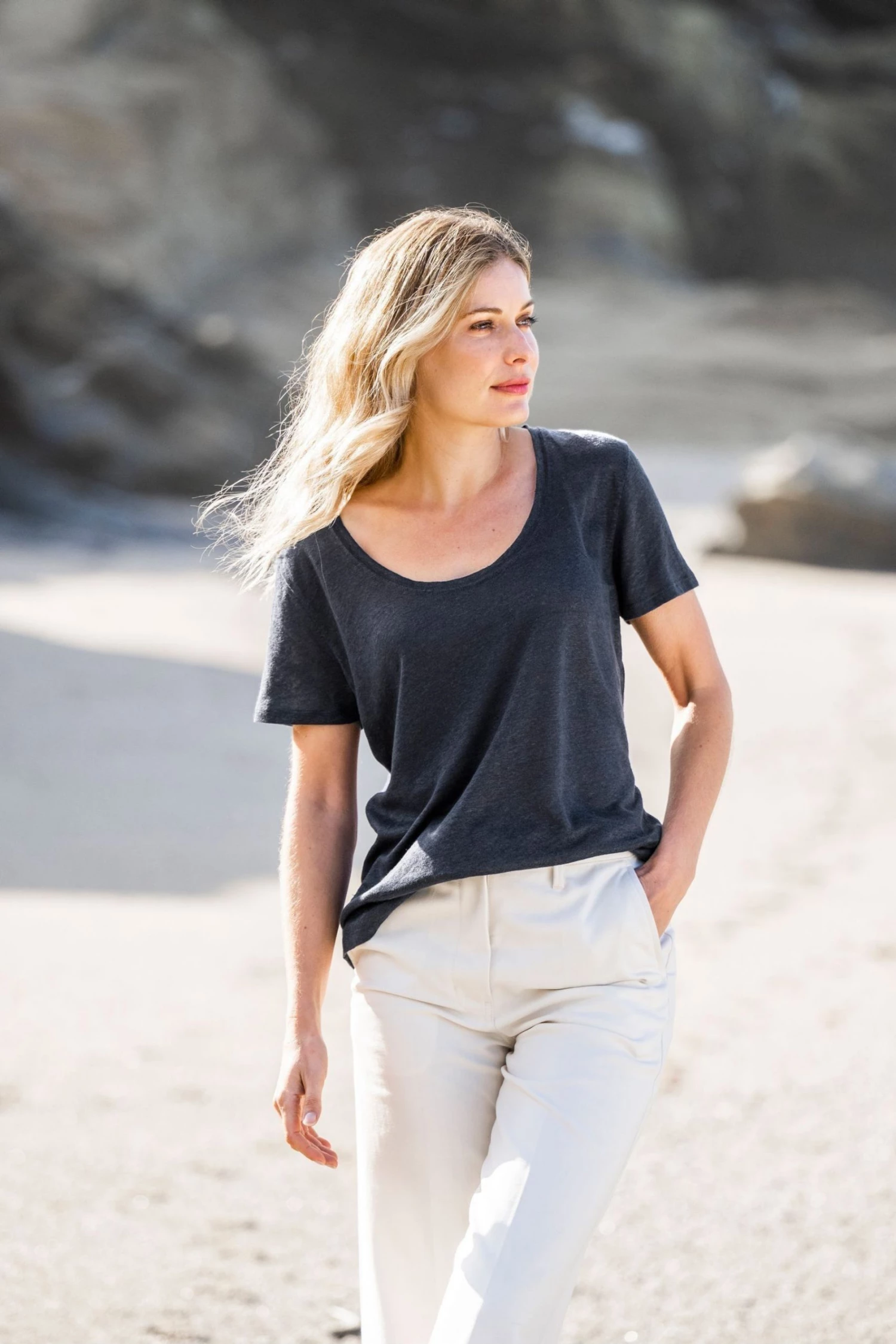 When the temperatures start to creep up (and they can’t wait for that), you need the right fabric blends in your wardrobe. Their versatile scoop-neck, curved-hem T-shirt has been crafted in 100% linen marked with a Masters of Linen accreditation and sourced from a nearby supplier to reduce emissions. Created using more sustainable washing processes and dye with a reduced impact on the planet, it feels every bit as good as it looks.