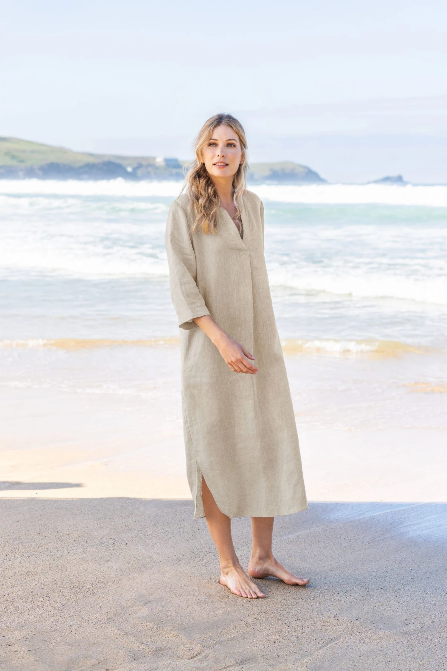 A throwover you’ll come to depend on, our midi-length kaftan is perfect for lounging at home, summertime BBQs or heading to the beach for a refreshing stroll along the shoreline. Crafted in naturally robust hemp that’s four times stronger than cotton, it’ll hold its shape and colour no matter how regularly you wear and wash it. Plus, thanks to requiring less water during growth and production, hemp is a far more sustainable choice, too.