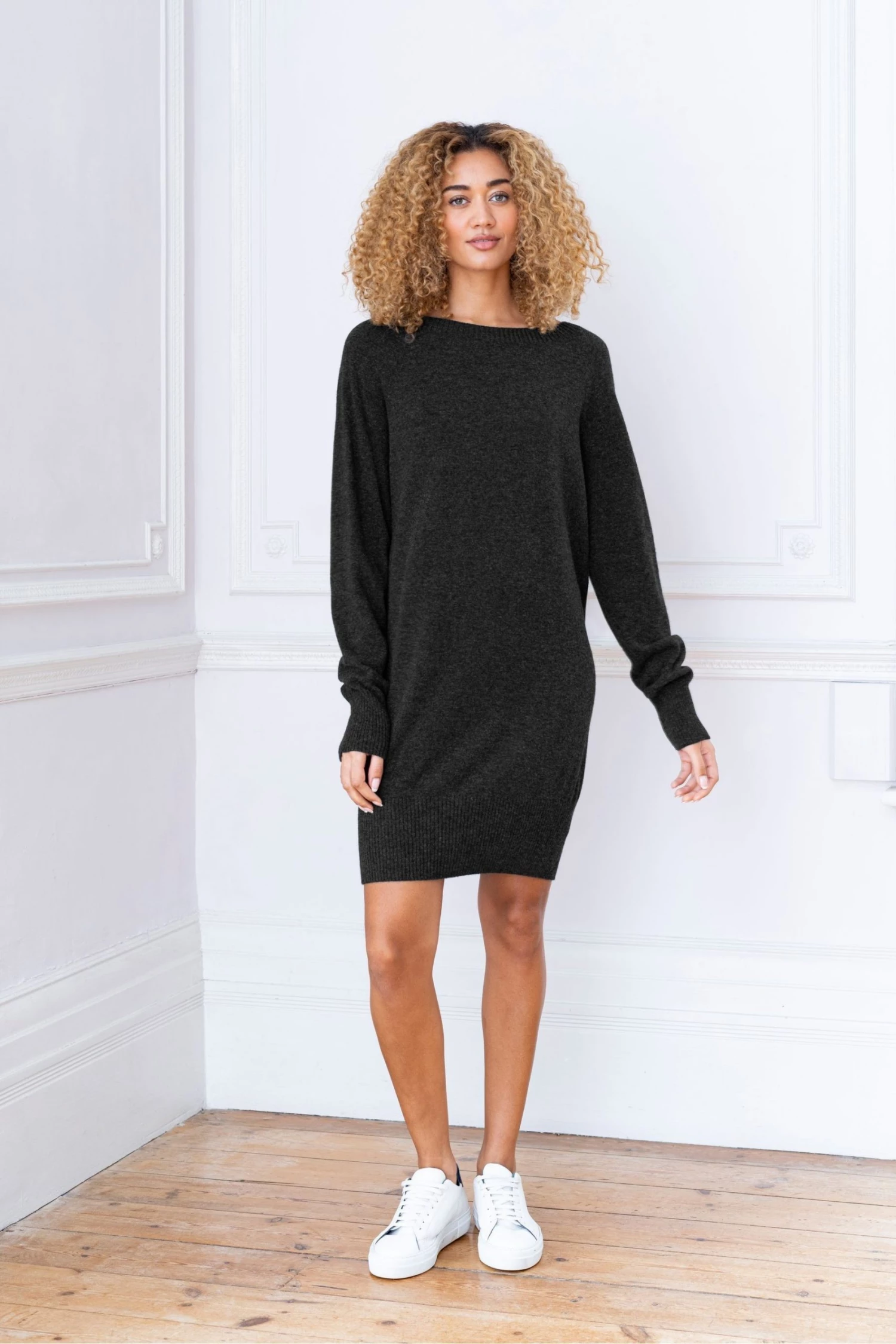 Introduce this year-round option to your rotation for go-to style that feels as good as it looks. Cut in super-fine Geelong wool, this simple slouch dress is framed with a scooped neckline and deep ribbing at the hemline and cuffs, helping it to hug comfortably in the right places.